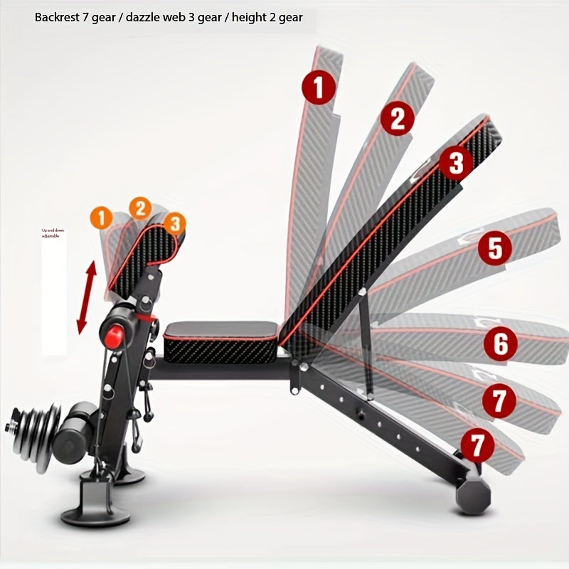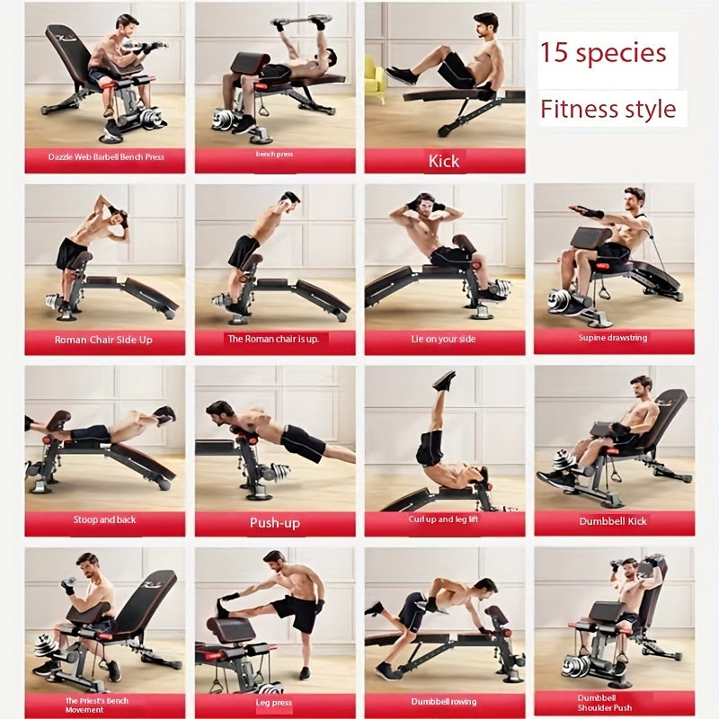1pc 15-in-1 Adjustable Iron Weightlifting Bench - Foldable Fitness Stool for Full Body Exercise, Strength Training, and Home Gym Workouts - Space-Saving, Durable, and Versatile