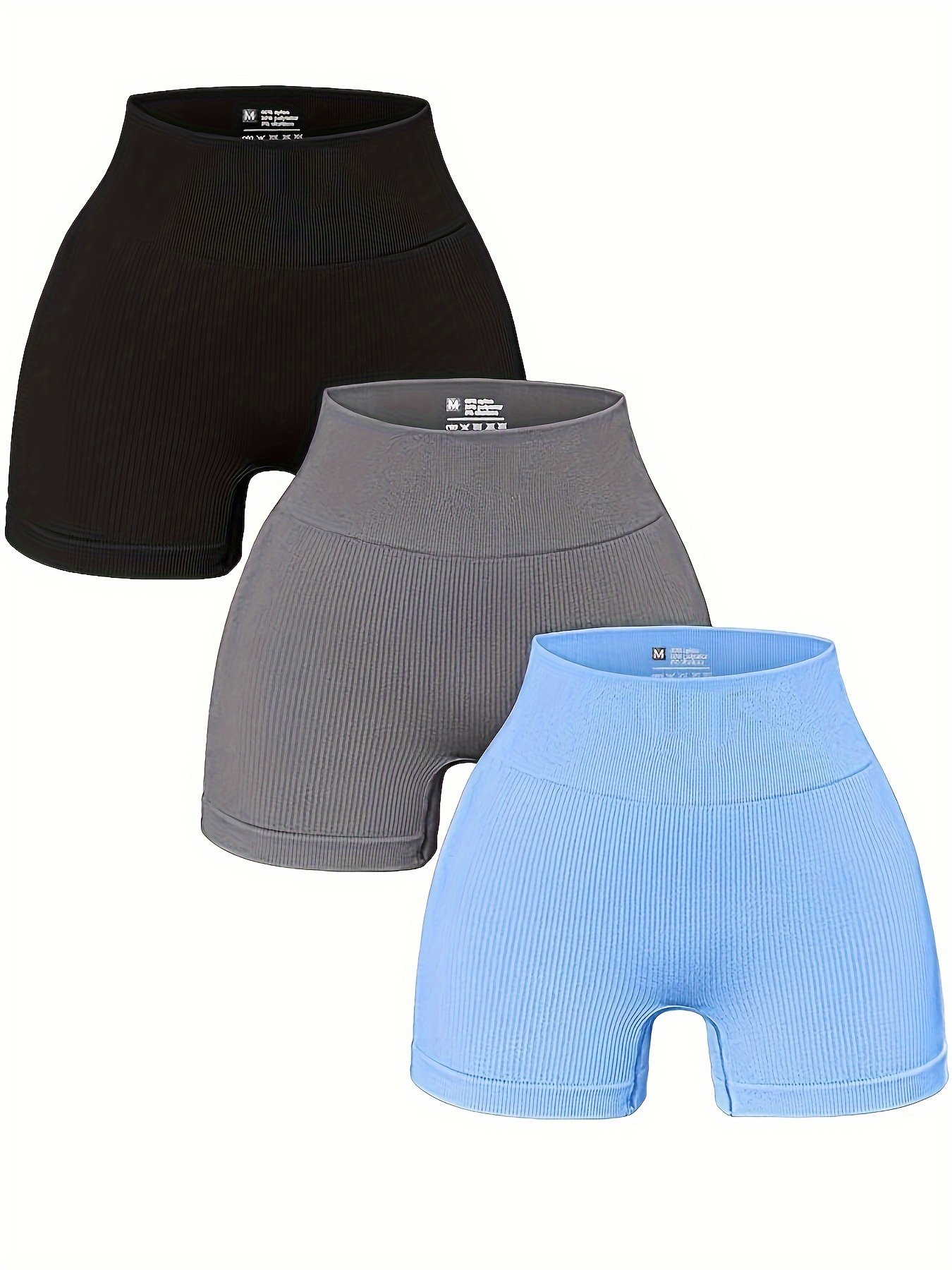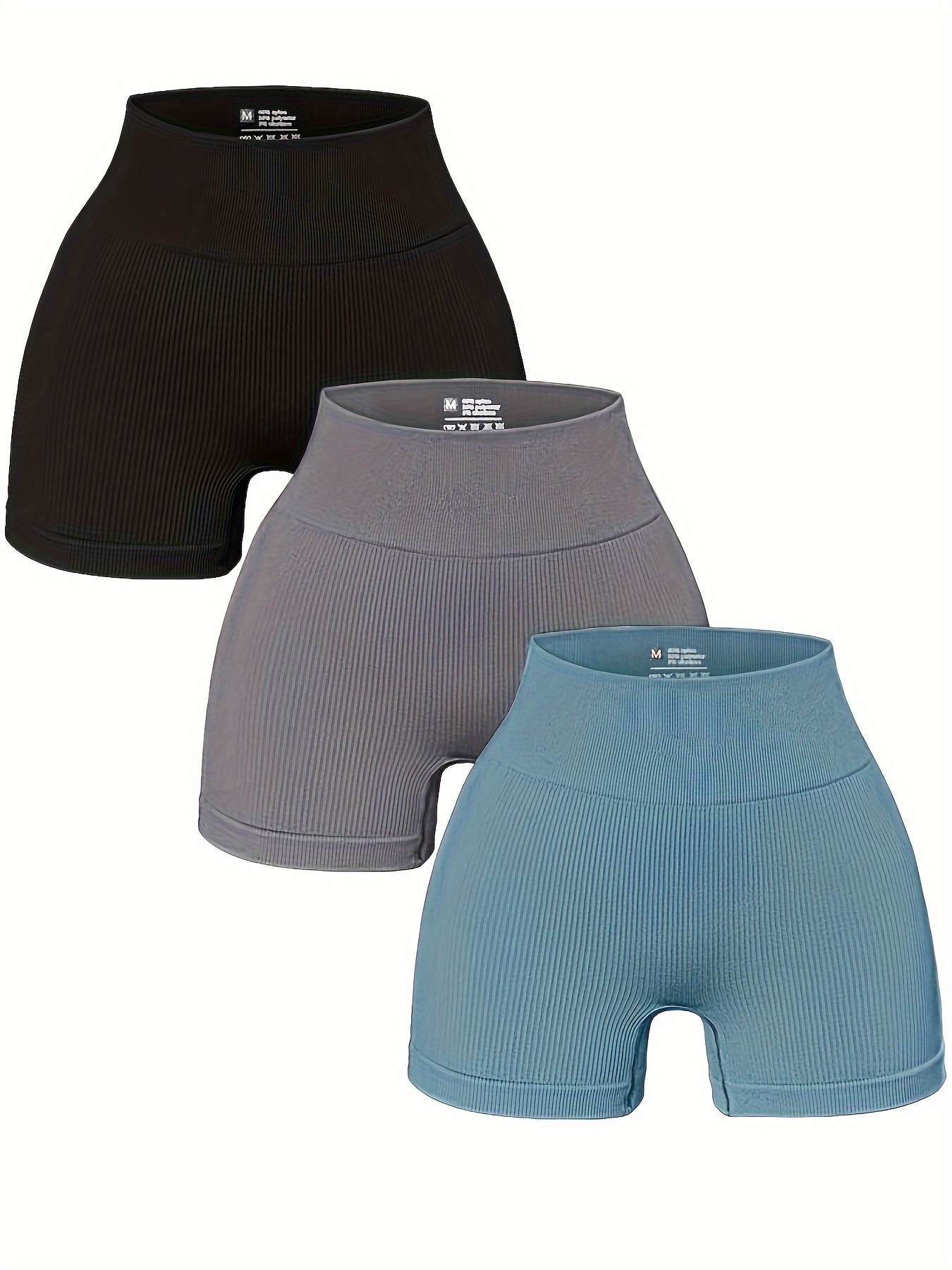 3pcs Women's High-Waisted Yoga Shorts - Seamless Athletic Gym Leggings with Ribbed Detailing, High-Stretch Non-See-Through Fabric, All-Season Workout & Casual Wear (Black/Grey/Maroon), Fitness Apparel | Minimalist Sporty Styl