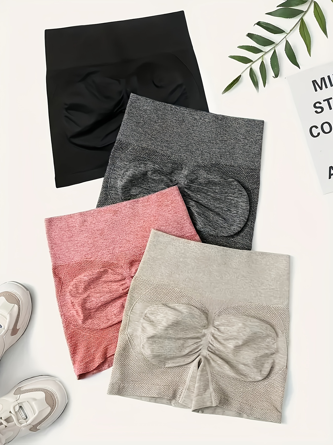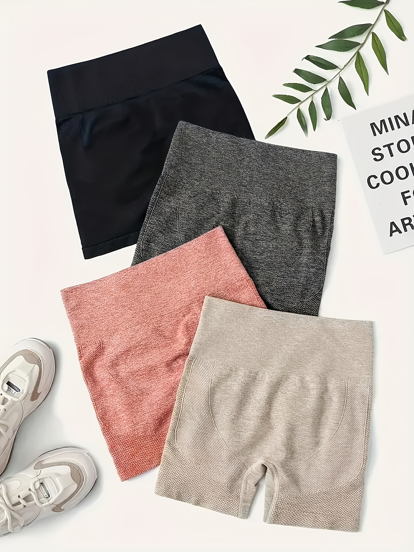 4pcs Women'S High-Waisted Yoga Shorts - Tummy Control Butt-Lifting Breathable Quick-Dry Workout Shorts in Black/Grey/Pink/Beige - High-Elasticity Fitness Running Shorts, Suitable for Yoga and Gym Wear | Seamless Design | High